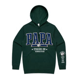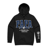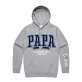 Custom Printed Hoodie for Dad - With Custom Date, City + names on sleeve - PAPA COLLEGE ROYAL STYLE