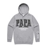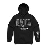 Custom Printed Hoodie for Dad - With Custom Date, City + names on sleeve - PAPA COLLEGE STYLE