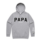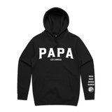 Custom Printed Hoodie for Dad - With Custom Date, City + names on sleeve - PAPA SIMPLE STYLE