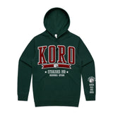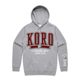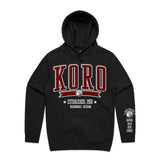 Custom Printed Hoodie for Koro - With Custom Date, City + names on sleeve - KORO COLLEGE RED STYLE
